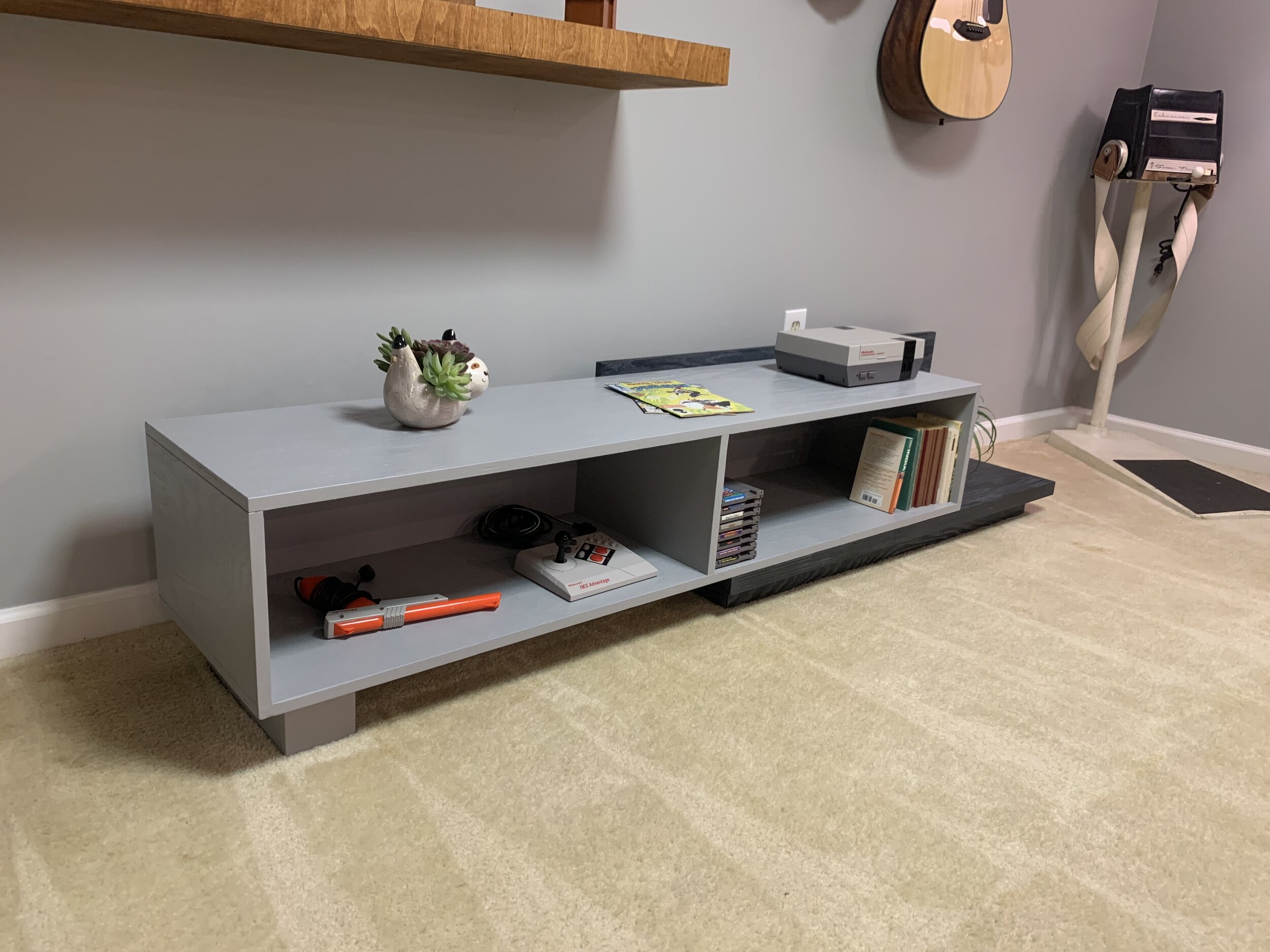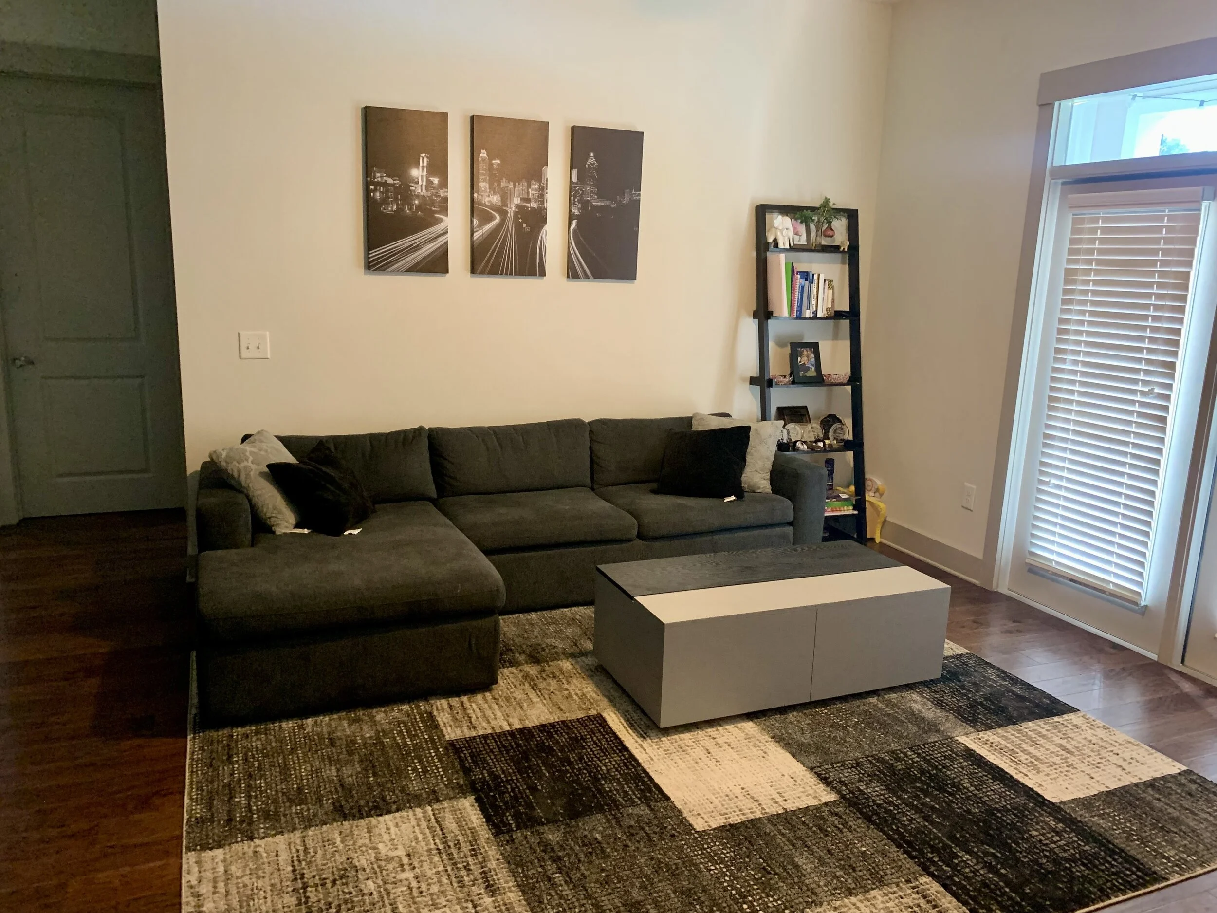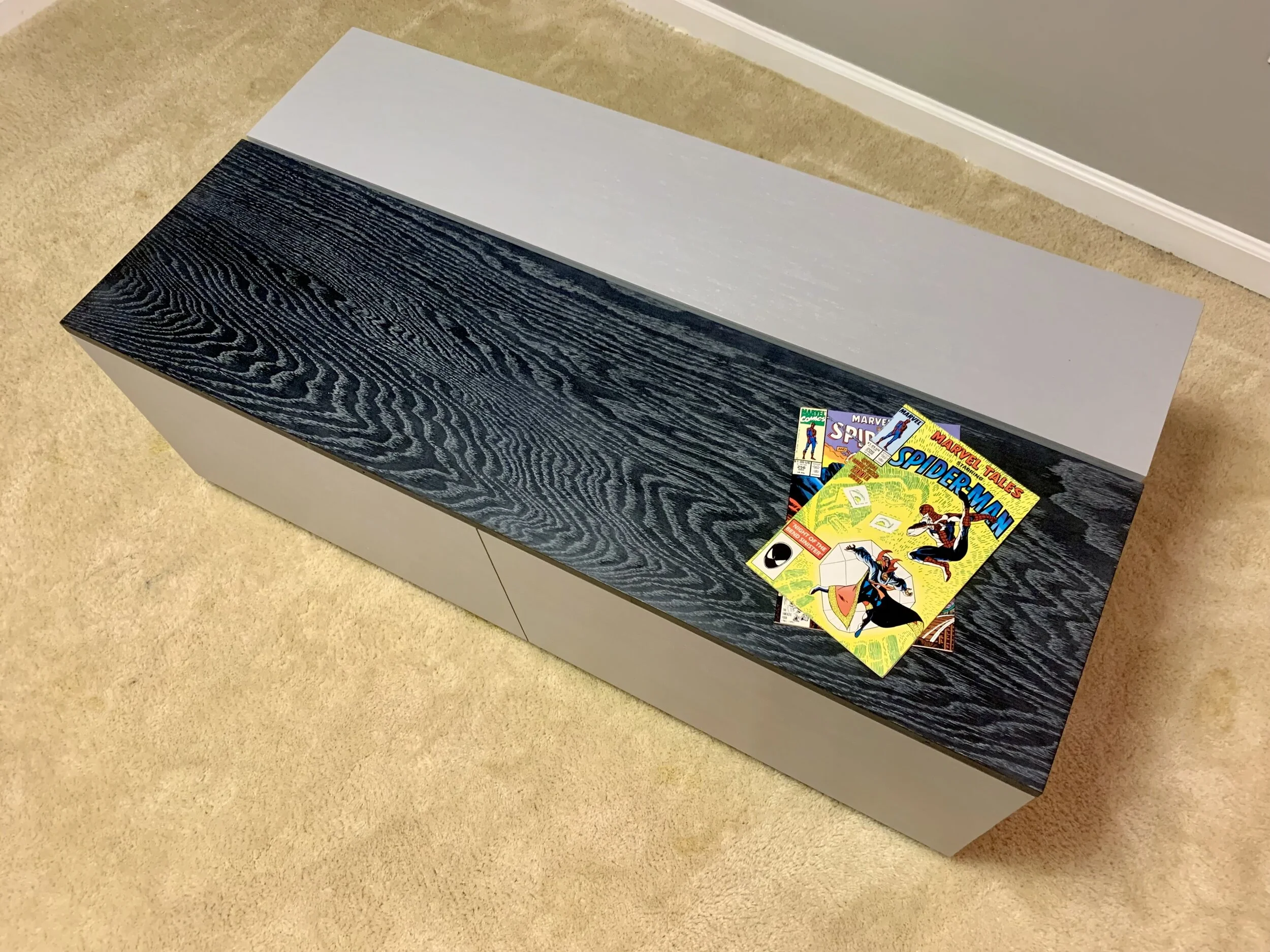 Sleek, smooth and modern. This matching coffee table and credenza set has a few surprises up their sleeves. The coffee table has a lift-top mechanism built in to get that beloved popcorn bowl within arms reach. The credenza is 2 pieces and has the unique ability to grow and shrink to accommodate any space.